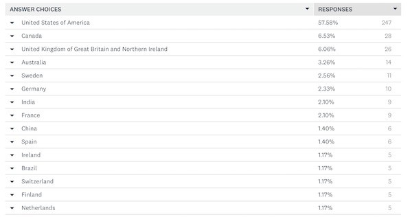 Every few years I do a reader survey. Below are results without cross-tabs (well, with a couple of exceptions) or any deeper analysis. I’ll probably do some follow-ups in the next month or so.
