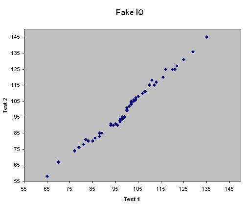 I have found this 160-page book to be quite helpful in fully wrapping my brain around the core ideas of statistics*, although it is best used in conjunction with a standard textbook containing the algebraic and computational sides of things. It would also help to read it after or concurrent with a first course in linear algebra: while there is no use of eigenvalues / eigenvectors or matrix algebra, you should be familiar with the basic idea of what vectors and vector spaces are (though some complain that many students memorize the matrix algorithms without "getting" the more basic ideas). The book does provide an overview of these fundamentals, but it is more of a reminder. Both to share this exciting new way of looking at statistics, as well as to help me get a solid lock on the perspective, I thought I'd give a little taste of what the book has to offer. Unfortunately, I'll be using fake data since I don't have enough time to collect my own or search for that of others, but the goal here is more didactic than empirical. Caveat: anyone who's already read the book or studied statistics in this way will be pretty bored by this post. Background The basic idea is that, unlike when we graph scatter-plots, which plot (in variable-space) how various subjects scored on different variables -- say, height and weight -- we're going to plot the variables themselves in "subject-space," to see directly how the variables relate to one another (since usually we don't care about the subjects themselves except as a way to figure out the relationships between the variables). For instance, let's say we tested two subjects on their height and weight, such that the height in inches and weight in pounds (respectively) for subjects A, B, and C were (69, 135), (72, 150), and (79, 200). In a scatter-plot, we'd have 2 axes (height and weight) and 3 data-points corresponding to the 3 subjects. Standing this view on its head, let's instead create a 3-D graph with one axis for each of the 3 subjects, and just 2 data-points (one for height, one for weight). The height data-point would "score" 69 on the A-axis, 72 on the B-axis, and 79 on the C-axis. The weight data-point would "score" 135, 150, and 200 on these axes, respectively. So then, our new data-points (69, 72, 79) and (135, 150, 200) are just vectors whose components are the heights and weights of all the subjects. Instead of trying to infer the properties of and relationships between the height and weight variables from a scatter-plot, we can see them more directly by examining the magnitude of the vectors and the angle between them. Notice that if we center each variable by subtracting the mean from each component, the new vector's components are deviations from the mean. Consider two such centered vectors x and y. If we take the dot product of x with itself, we get the sum of the squares of each component. And since the components are deviations from the mean, x dot x is equal to the variance; square-rooting this gives us the standard deviation. Now, recall the following dot product formula for the angle between x and y: cos(x, y) = (x dot y) / (|x| times |y|) Since any vector is collinear with itself, the angle between "them" is 0, making the cosine 1. If both vectors on the right-hand side of the equation are the same, then x dot x must equal |x| times |x| or |x|^2 to make the ratio equal 1. Because in our case x dot x equals the variance of the variable it represents, then the variance also equals the square of the length or magnitude of the vector. Thus, the length itself equals the square-root of the variance, or standard-deviation. That's a pretty neat way to see how spread out the values of a variable are: just look at how long the vector representing it is. As for their correlation, refer to MathWorld's entry on the correlation coefficient, specifically line 22 (the notation for sum of squares, SS, is defined in the first 9 lines). Square-root both sides to get r by itself. Since we've centered our variables, we could re-write the formula as: r = (x dot y) / (|x| times |y|) Of course, that's equal to the cosine of the angle between x and y, so taking the inverse-cosine of the ratio on the right-hand side gives us the correlation coefficient. Thus, the larger the cosine -- and so, the smaller the angle -- the larger the correlation. That makes it an easy task to see the correlation: draw the vectors from the same point and look at the angle formed between them. An example So, let's take a look at how this might play out in the real world. Suppose we test 50 people on two distinct IQ tests and create a scatter-plot of an individual's score on Test 1 and Test 2. It might look something like this (again, this is fake data for illustration): Let's just focus on two aspects of the data, the correlation between scores and the variance in scores for each test. Clearly, there is a high correlation between scores, as we'd expect if IQ tests measure pretty much the same underlying construct (general intelligence). As a correlation always lies in [-1, 1], eyeballing the correlation from a scatter-plot forces you to judge angles that range from 0 to 45 degrees in magnitude. When we redraw the two variables as vectors, however, the angle between them (which again indicates the correlation) can range from 0 to 90 degrees in magnitude, which places less stringent demands on our visual acuity to get the gist of the picture. Judge for yourself (this shows the centered variables, but the correlation between them and their variances are unaffected by translating the mean to 0): Even as a more visually oriented person, I find the small angle between the vectors (~6.9 degrees) easier to grok than the discrepancy of the trend-line's slope from +/- 1. Turning now to the variance in scores, it's not so clear from the scatter-plot which test has greater variance -- to my eye, it looks wider than taller, suggesting Test 1 has greater variance, but this is wrong. In fact, the