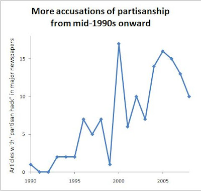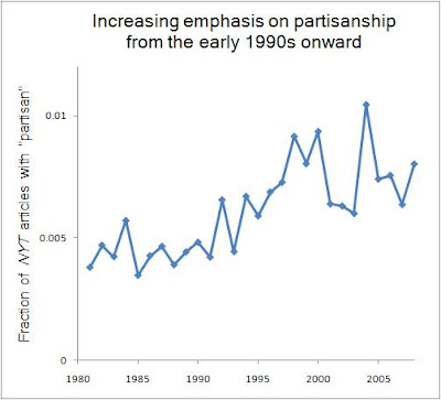 I started with the complaint that when a science isn't very mature, people focus too much on individuals -- they're like disciples hanging on every word of the prophet, or quoting him in exegesis if he's dead. For example, Freudian, Marxism, Chomskyan, and Darwinian or Darwinism are common terms, yet they don't actually say what they're for -- just whatever the guy said. Contrast this with the rare or non-existent terms Lavoisierism, Newtonian (the far more common phrase is "classical" mechanics), etc. Adjectival forms in math are only meant to show who discovered or invented something -- Gaussian distribution, Hessian matrix, Laplace transform, etc. -- rather than refer to a large body of theory that the guy put together. This is compounded in journalism since writers usually are arts and humanities majors, who will thus be tempted to write biographical pieces and present the social history of the scientists, rather than digest what their contributions were and convey that substance to the readers. Such articles would certainly contain their names, but not necessarily the concepts they invented. So, my measure of "fluff" is the number of articles that contain a famous scientist's name (funny way of defining fluff, but you'll see). My measure of "substance" is the number of articles that mention a particular theory, concept, or whatever, associated with that scientist. I then take the ratio of substance to fluff and track this over time. This ratio answers the question: "For every article that mentioned the scientist, how many articles mentioned a big idea linked to him?" Larger values mean a greater focus on the theory itself rather than the person who invented it. I'm sure you have vivid memories from high school chemistry class about what an atom looks like, but I'll bet you find it difficult to remember what's-his-name and you-know-uh-that-guy who developed the various parts of the model. That's good -- the key ideas stuck. Now on to the data. I searched the NYT from 1981 to 2008 for "Darwin," "evolutionary," "natural selection," "Adam Smith," "invisible hand," "the big bang," and "Einstein" (removing results with "Einstein College"). And before the autistic geek brigade pipes up about how Einstein didn't propose the Big Bang -- no shit. But his ideas did help pave the way, and his name is the only one common enough to get lots of data for each year (unlike Lemaitre, who gets only 8 hits during the entire 28-year period). Likewise, general relativity and Brownian motion don't exactly get a lot of coverage. For physics, it's either the Big Bang or black holes, and the latter has been appropriated into common usage far more than the former, so using "the Big Bang" is better for making sure the context is scientific. Here are graphs showing the substance-to-fluff ratios over time: ![]() ![]() Overall, things look good -- reporters are focusing more on the deeper ideas of the field, compared to dropping names. The year-to-year variation is a lot wilder for economics, but it's a social science, and so less mature than biology or physics. So, writers may be more fickle when they're deciding whether to focus on the ideas or to invoke some famous guy's name. Indeed, we expect that in some areas of social science, education, and health and nutrition -- which are largely presided over by a dogmatic priestly caste -- the major breakthroughs in the field won't be reported at all, or will show downward trends over time, as the ideology police slowly buries them down the memory hole. This jibes with what most people say about the NYT science reporting -- it's great for the hard sciences, but it might as well be the funny pages for social science or health and nutrition. Sure, the NYT regularly churns out stories about non-existent "trends" based on what's fashionable among a handful of neurotic Jewish mothers on the Upper West Side. But at the same time, the NYT also allows Carl Zimmer, Nicholas Wade, and John Tierney to get the word out about a lot of great research. I didn't read the NYT in 1981, as I was not even 1 year old for most of that year, but based on the above data, I would guess that the science reporting was not nearly as good as it is now. It's yet another example of how the panic about the world going to hell only applies to the arts and humanities, not the sciences. No one gives a shit about contemporary art anymore, and quoting a Yale lit crit theorist these days would only get you laughed out of the room. This is good -- people have woken up. As far as the intellectually curious crowd is concerned, though, things are only getting better. Labels: culture, New York Times, News, science
